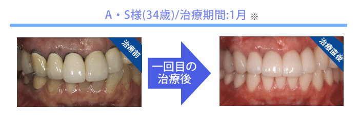 初回に2時間の集中治療を行います。治療が必要な歯を全部同時に治療し、歯を調整して、最後に白くて見た目がキレイな仮歯(プラスチック製)を装着し、きれいな口元になります。